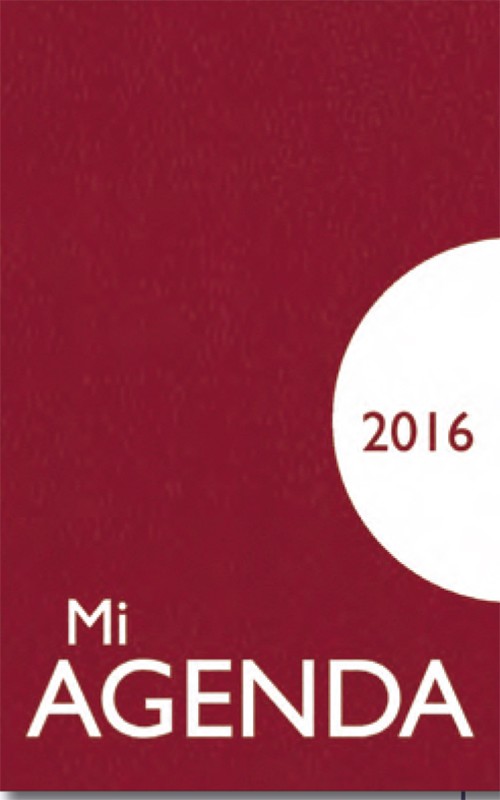 Mi agenda 2016 está disponible en dos versiones: en funda de plástico serigrafiada (en colores rojo o azul), y en funda transparente con cubierta impresa (existen dos modelos de cubierta).