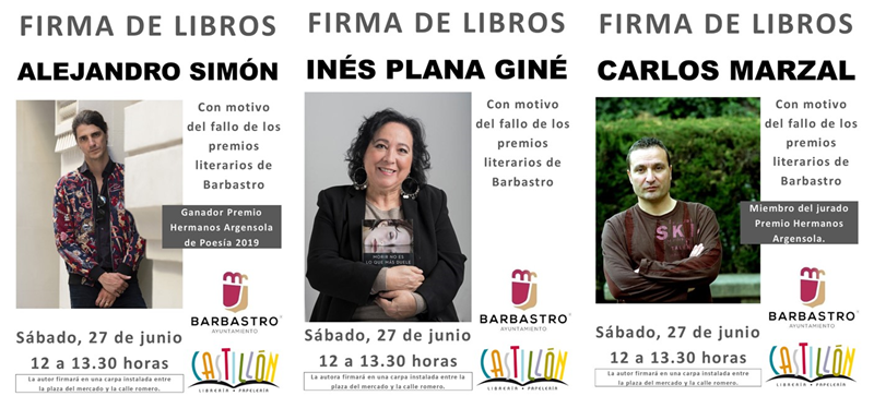 Este sábado 27 de junio, de 12 a 13:30 horas disfrutaremos con tres autores que han conquistado a multitud de lectores en distintos momentos y de diferentes formas. Los tres forman parte de los jurados de los premios literarios de Barbastro.
