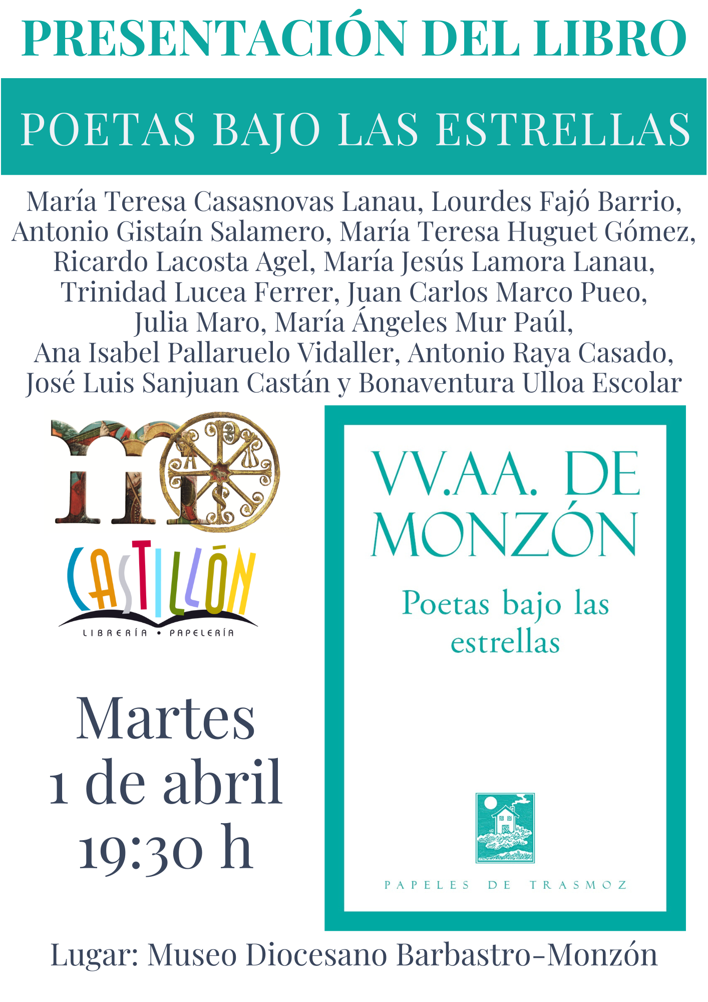 El martes, 1 de abril, a las 19:30 h en el Museo Diocesano Barbrastro-Monzón tenemos una cita con 14 altoragoneses entusiastas de la poesía