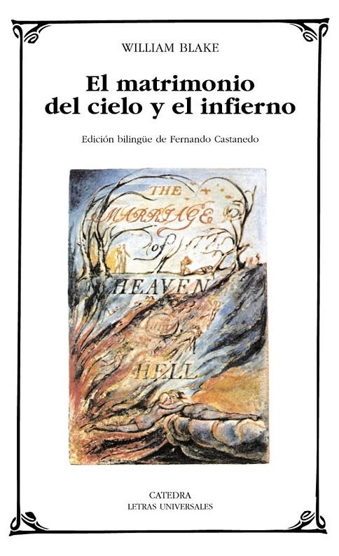 " El matrimonio del cielo y el infierno " ocupa un lugar privilegiado en la evolución poética y artística del William Blake (1757-1827). Educado en la tradición disidente o inconformista, es decir, en la religión de aquellos que aceptaron la ruptura con Roma pero no el sometimiento a la nueva Iglesia de Inglaterra fundada desde la monarquía, Blake planeó una obra que le brindara la posibilidad de denunciar la moral instituida, exponer su visión antinómica del mundo, expresar sus ideas sobre el origen de las religiones e incluir un canto revolucionario, la " Canción de la libertad " , muestra de la energía revolucionaria que se desató a finales del siglo XVIII.