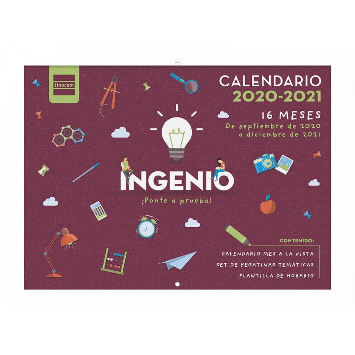 Calendario de pared de 16 meses: inicio en septiembre de 2020 y finalización en diciembre de 2021. Incluye 165 pegatinas temáticas y plantilla de horario recortable. Ideal para que los estudiantes puedan planificarse con éxito el curso. Contiene los elementos indispensables para una buena organización: calendario mes vista con celdas diarias con sombreado para destacar temas o dividir cronológicamente el día (mañana, mediodía, tarde/noche); espacio para notas y calendario del mes anterior y posterior en cada página; informaciones diarias útiles (onomástica, festivos nacionales, fases lunares, cambios de estación, cambios de hora y días señalados como el día de la madre, el día del padre, carnaval, etc.). Elemento pedagógico ideal para educar en organización del tiempo.