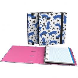- CarpeBook en cartón forrado con papel plastificado.- Con mecanismo de 4 anillas redondas de 25 mm.- 4 ollaos frontales para las anillas.- Formato para hojas DIN-A5.- Lomo curvo, más ergonómico.- Cierre con goma elástica extra resistente de 15 mm de ancho.- Con recambio de 100 hojas interiores cua...