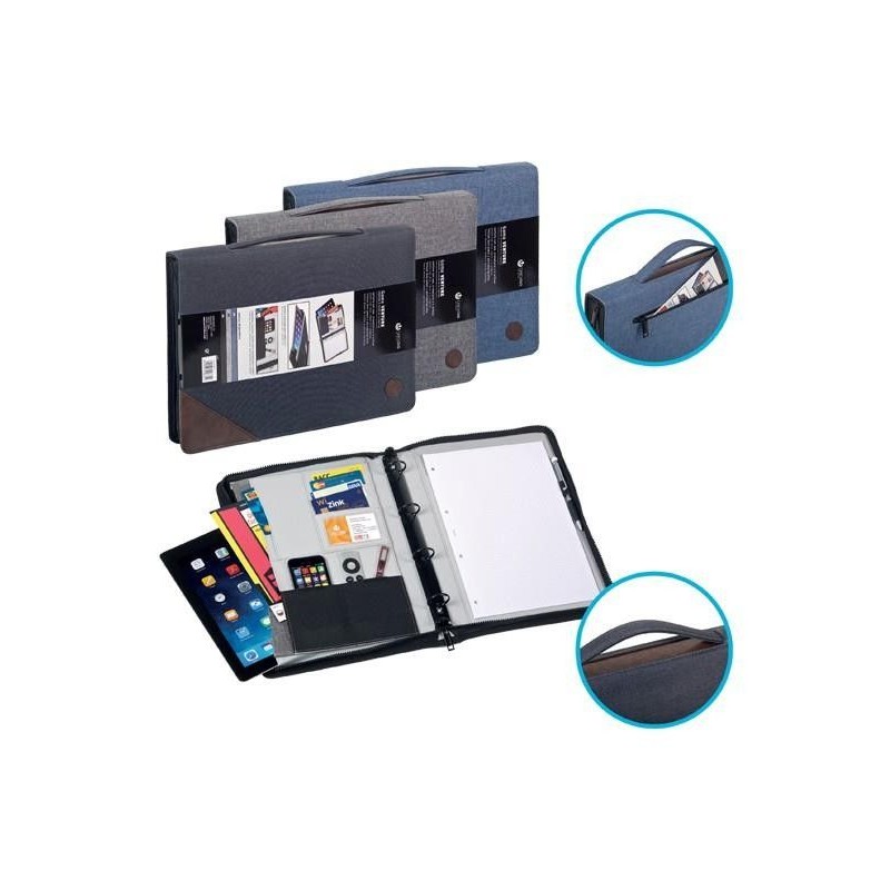 CARTERA CON ASA, CREMALLERA Y 4 ANILLASINCLUYE BLOC DE PAPEL Y PORTABOLIGRAFOS