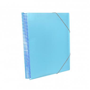 Carpeta de fundas con espiral de plástico y sobre con cierre interior para poder guardar notas sueltas. Cierre con gomas elásticas.