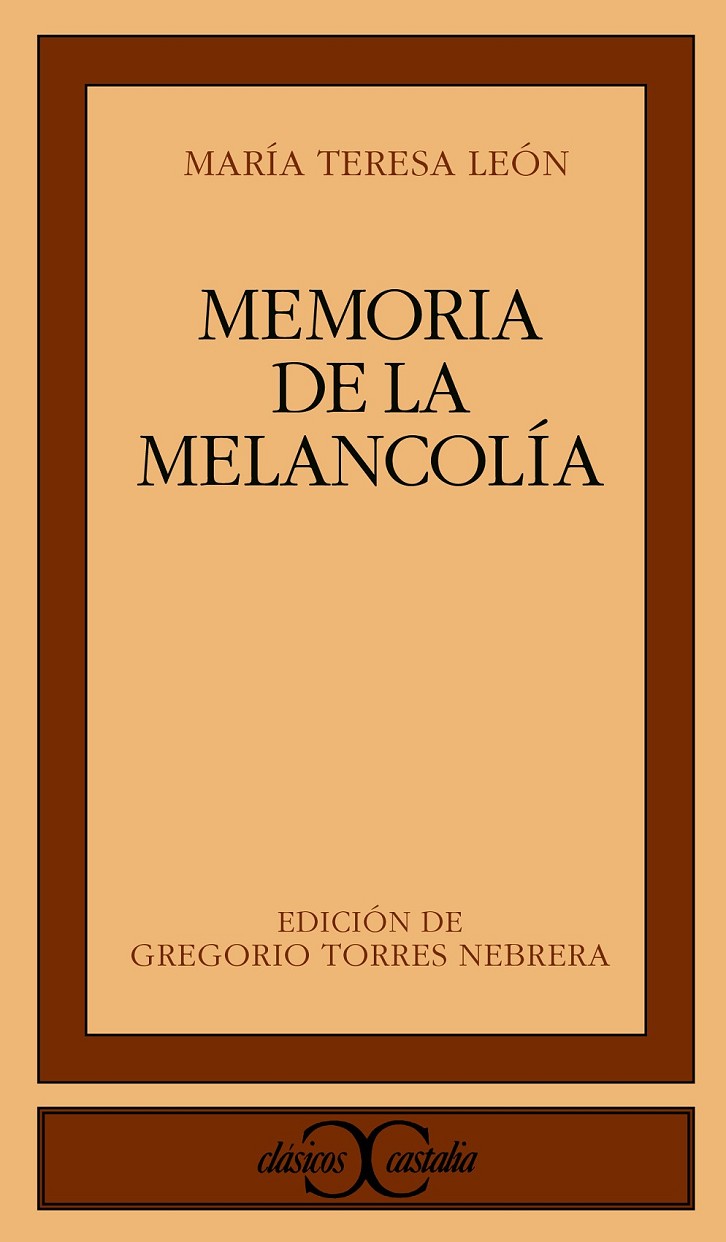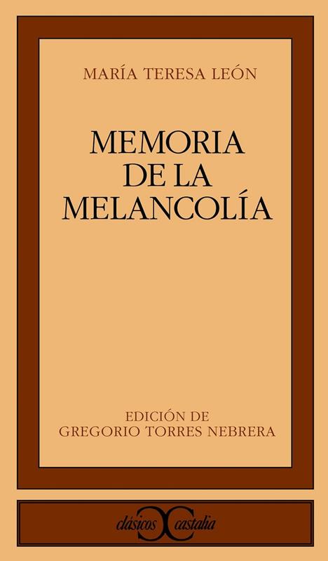 Entre el brillantísimo grupo de escritores que pobló el panorama cultural español de los años veinte y treinta de este siglo, que casi ya se va, y buena parte de los años del exilio, destaca por su originalidad, su profundo bagaje cultural, y su inteligente feminismo, María Teresa León, autora de una prosa hermosa e impecable. Casi con seguridad, su unión sentimental con el poeta Rafael Alberti dejó en un segundo plano su importancia como escritora. Pero su libro de memorias está a la altura de la indiscutible Arboleda perdida albertiana, y es con seguridad uno de los textos en prosa de mayor calidad entre los del Veintisiete. Memoria de la melancolía nos permite conocer mejor nuestra historia, a Alberti, y, por supuesto, a la burguesa, rebelde, guerrillera, exilada, esposa, madre, feminista, amiga y escritora: María Teresa León. GREGORIO TORRES NEBRERA , catedrático de Literatura Española en la Universidad de Extremadura, es autor de la monografía Los espacios de la memoria . La obra literaria de María Teresa León.