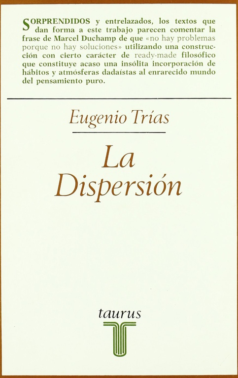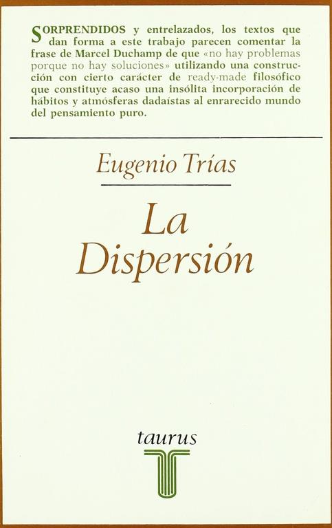 Cada uno de esos breves textos constituyen una invitación a reflexionar de una manera original y profunda sobre aquellas cuestiones que por su carácter trascendental han sido objeto permanente de nuestras inquietudes. Eugenio Trías ha hecho de cada fragmento un auténtico desafío lanzado como un guante al lector, que éste no puede dejar de aceptar. La dispersión es, en suma, un libro particularmente indicado para iniciarse en los sugerentes contenidos de la filosofía, para incitar a la reflexión y a la polémica. Y es que, como señala el propio Trías, "escribir, pensar" son actos gratuitos: son vida.