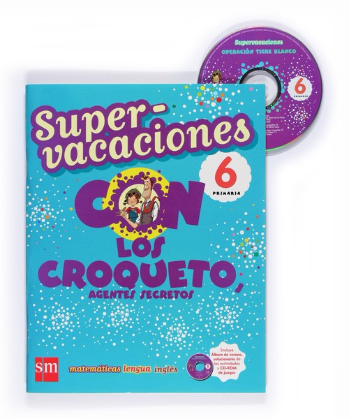 El libro de Supervacaciones SM para el sexto curso de Primaria tiene como objetivo ayudar a los niños a mantener los hábitos aprendidos durante el curso escolar y repasar los principales aprendizajes que han incorporado en las áreas de Matemáticas, Lengua e Inglés. Los niños y niñas de 11 y 12 años podrán ocupar una parte de su tiempo de ocio con lecturas y actividades divertidas que podrán realizar de forma autónoma motivados por unos personajes muy atractivos, los Croqueto, agentes secretos.