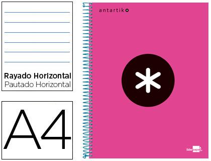 • CUADERNO ESPIRAL LIDERPAPEL ANTARTIK A4 TAPA FORRADA 120H 100GR HORIZONTAL 5 BANDAS 4 TALADROS ROSA FUCSIA