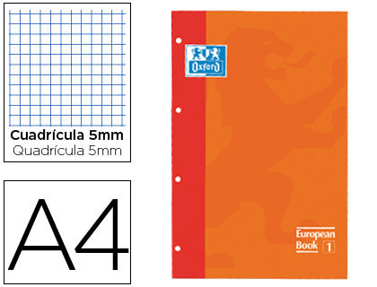 80 hojas. Din a4. 4 taladros. Papel de 90 g/m2. Banda y cuadrícula del mismo color. Cuadrícula de 5 mm.