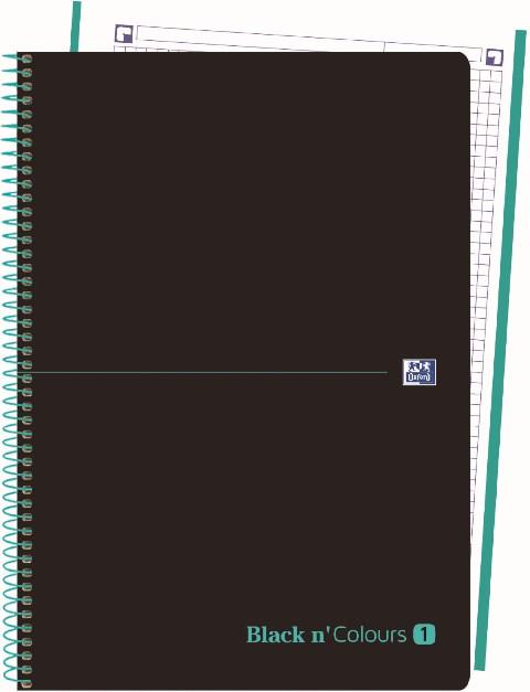 • CUADERNO ESPIRAL EBK1 OXFORD BLACK&COLORS A4+ 80H 90GR CUADRICULA 5MM CR 4TAL T.PLAST. VERDE MENTA ICE MINT 40088227