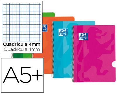 • CUADERNO OXFORD SCHOOL ESPIRAL A5+ 155 X 215 MM 80H 90GR CUADRÍCULA 4 MM TAPA PLÁSTICO