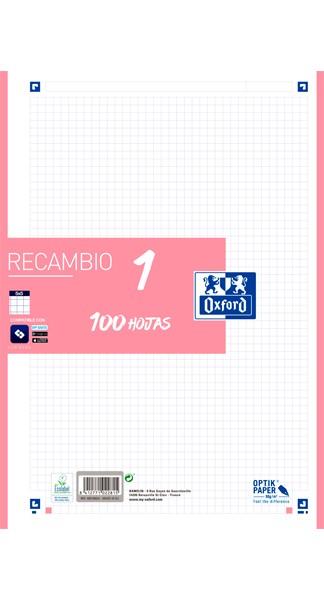 • RECAMBIO OXFORD A4 100 H CUADRÍCULA 5 MM BANDA COLOR ROSA