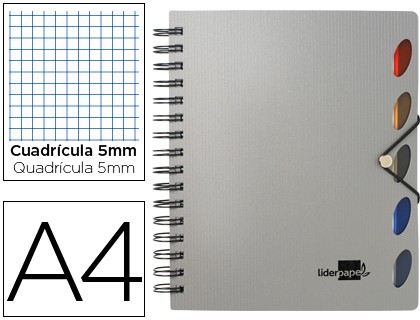 • CUADERNO A4 LIDERPAPEL EXECUTIVE CDL 5MM 100H 80GR 5 SEPARADORES PLASTICO PLATA 35967