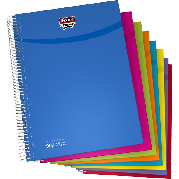 Cuadernos de cartón forrado con papel plastificado (tapa extra dura). Mecanismo de espiral metálica. Todas las hojas interiores cuadriculadas (4mm con margen) 70 g/m² 100h.