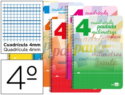 • CUADERNO ESPIRAL LIDERPAPEL PAUTAGUIA 4º TAPA EXTRA DURA 80H 80GR CUADRICULA 4MM CON MARGEN