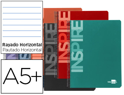 • Cuaderno espiral liderpapel cuarto inspire tapa extradura 80h 60g horizontal con margen 32867