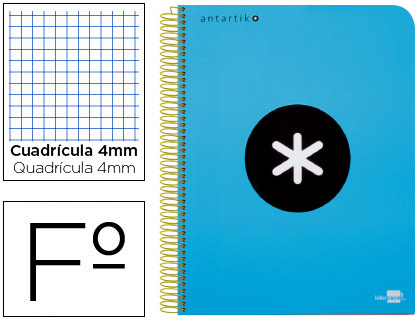 • CUADERNO ESPIRAL LIDERPAPEL ANTARTIK FOLIO TAPA PLASTICO 80H 100GR CDL 4MM AZUL
