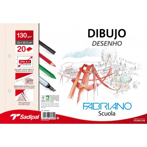 • BLOC DE DIBUJO A4 FABRIANO CON ESPIRAL 2 TALADROS MICROPERFORADO CON RECUADRO 130 GR/M 20 HOJAS