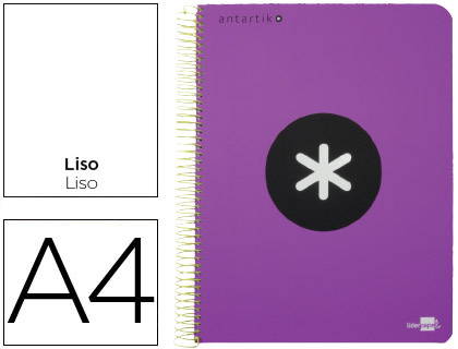 • CUADERNO ESPIRAL LIDERPAPEL A4 MICRO ANTARTIK TAPA PLÁSTICO 120 HOJAS 100GR/M2 LISO CON BANDAS 5 COLORES 4 TALADROS TAPA VIOLETA