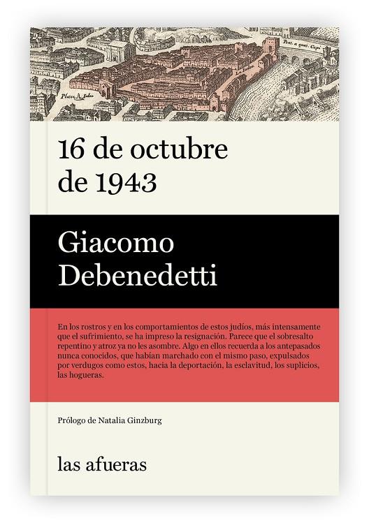 16 de octubre, 1943 es la primera memoria escrita de la Shoah italiana y una de las primeras publicaciones aparecidas sobre este tema en Europa. Una crónica de aquel terrible día que culminó con la deportación de los habitantes del gueto de Roma a los campos de la muerte de los que casi ninguno regresaría. Debenedetti articula un relato coral siguiendo a los protagonistas de aquellos hechos, dando voz a una colectividad anónima que nos hace partícipe de su drama. Este volumen incluye también Ocho judíos, otra pieza breve de Debenedetti, en la que el autor reflexiona sobre la condición judía y su relación con el otro a partir de los trágicos acontecimientos que le tocó vivir.