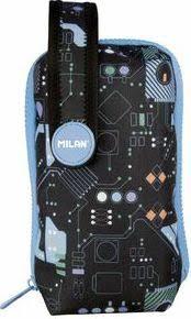 Kit 1 estuche extraíble con contenido. Edición especial Connection a juego con la mochila y la carpeta. Color azul y negro. Contiene: 1 goma de borrar, 1 portaminas 0,5 CAPSULE Slim, 4 bolígrafos CAPSULE (azul, negro, rojo y verde), 1 regla de 15 cm, 1 evidenciador CAPSULE amarillo fluo. Medidas: 19,4 x 10 x 8 cm.