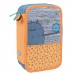 Plumier 3 pisos con contenido. Color azul y naranja. Edición especial Mimo. Contenido: 1 goma de borrar, 1 sacapuntas AFILA, 1 lápiz de grafito HB, 3 bolígrafos P1 (azul, negro y rojo), 1 tijeras basic, 5 marcadores fluorescentes, 10 Plastipastel, 12 lápices de colores triangulares, 18 rotuladores de punta cónica. Composición: exterior 100% poliéster. , forro interior 150D poliéster. Medidas: 19,5 x 13 x 7,5 cm.