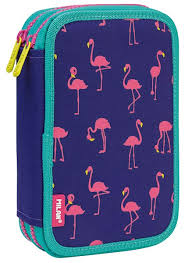Plumier 2 pisos con contenido. Color rosa. Edición especial Colours. Contiene: 2 gomas de borrar, 1 sacapuntas AFILA, 1 lápiz de grafito HB, 1 bolígrafo P1 azul, 1 regla 15 cm, 12 lápices de colores triangulares, 18 rotuladores de punta cónica. Medidas: 19,5 x 13 x 5 cm. Composición: exterior 100% poliéster acolchado con pespuntes , forro interior 100% poliéster.