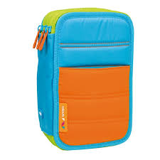 Plumier 2 pisos con contenido. Color rosa. Edición especial Colours. Contiene: 2 gomas de borrar, 1 sacapuntas AFILA, 1 lápiz de grafito HB, 1 bolígrafo P1 azul, 1 regla 15 cm, 12 lápices de colores triangulares, 18 rotuladores de punta cónica. Medidas: 19,5 x 13 x 5 cm. Composición: exterior 100% poliéster acolchado con pespuntes , forro interior 100% poliéster.