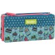 Estuche escolar portatodo con tres bolsillos independientes separados mediante cremalleras.