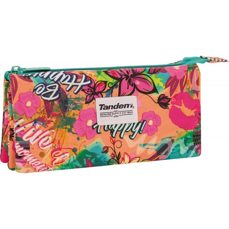 Referencia: 234078Medidas (cm): 23x11x5Colección: Tandem HappyColección de mochilas TANDEM con un estampado divertido lleno de flores, besos y mucho amor. Material poliéster 600x600D, totalmente forrado, tirador cremallera en acabado metálico y nuestra etiqueta emblemática tejida.Estuche portatod...