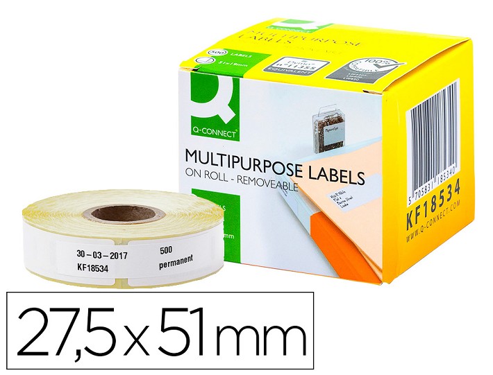 • Etiqueta adhesiva removible q-connect kf18534 compatible dymo 11355 tamaño 27,5x51 mm caja con 500 etiquetas
