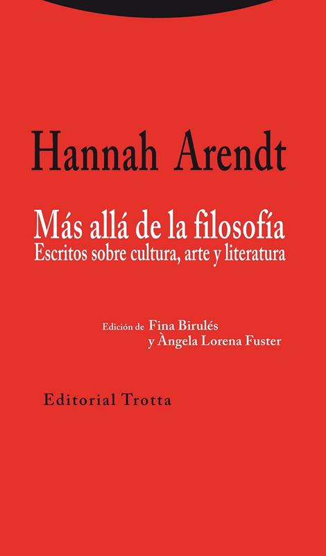 Bajo el título de Más allá de la filosofía se ofrece una serie de textos de Hannah Arendt, en su mayoría inéditos en lengua castellana, que dan a conocer el importante papel que en sus reflexiones desempeñan la crisis de la cultura, la poesía, el arte y la narración literaria. Al recoger trabajos y artículos redactados casi a lo largo de una vida, esta colección permite descubrir la articulación del estilo de su autora, la genealogía de algunos de sus conceptos más relevantes y de ciertos temas que atraviesan toda su obra.