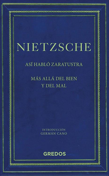 Filósofo que supo criticar como nadie los fundamentos metafísicos de la cultura occidental, Friedrich Nietzsche (1844-1900) es una figura esencial para entender el cambio entre la moral tradicional y la filosofía que estaba por venir. Ideas tales como la voluntad de poder, el eterno retorno, el superhombre o la muerte de Dios jalonan su pensamiento radical. Probablemente, las obras que constituyen la mejor síntesis de su filosofía son las dos que se recogen en este volumen: Así habló Zaratustra (escrita entre 1883 y 1885, aunque publicada en 1892) y Más allá del bien y del mal (1886). Ambas, cada una a su modo, exponen con una fuerza y un estilo directo inusuales las líneas maestras del ideario nietzsecheano.