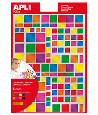 • GOMETS APLI MULTICOLOR CUADRADOS METALIZADOS 6 HOJAS ADHESIVO PERMANENTE COLORES Y TAMAÑOS SURTIDOS 13530