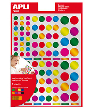 • GOMETS APLI MULTICOLOR REDONDOS METALIZADOS 6 HOJAS ADHESIVO PERMANENTE COLORES Y TAMAÑOS SURTIDOS 13529