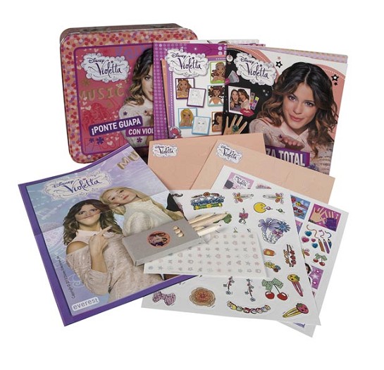 Lata que incluirá: dos libros con consejos de belleza, hojas de pegatinas, hojas de estarcidos, un póster, una cajita con lápices de colores y una hoja de tatuajes para uñas. Con todos elementos para sacar el mayor provecho a tu belleza con Violetta.