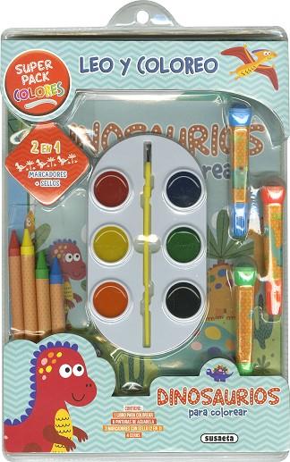 Con este completo pack para colorear podrás dar vida a los dinosaurios del libro de la manera que prefieras, ya que contiene diferentes materiales de pintura para elegir: ceras, acuarelas, marcadores e incluso divertidos sellos para darle un toque decorativo a tus dbujos. Escoge el que más te guste ...