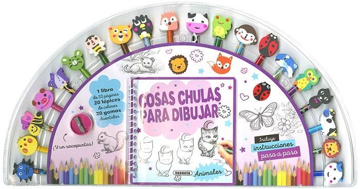 Aprende a dibujar un montón de animales con las sencillas instrucciones de este libro. Después, tendrás que colorearlos... ¡y no te faltará material! Porque con este libro se incluyen nada menos que 20 lápices de colores con 20 gomas en forma de animales que te van a encantar. Y, para completarlo, ¡un sacapuntas!