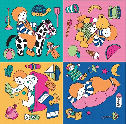 Manta acolchada interactiva que proporcionará al bebé largos ratos de diversión y aprendizaje. En ella el niño encontrará cuatro temáticas repletas de ilustraciones en las que Teo es el protagonista: la hora de baño, los juguetes de Teo, los alimentos y la hora de dormir. La manta también tiene un bolsillo con un libro de tela lleno de divertidas imágenes de Teo.