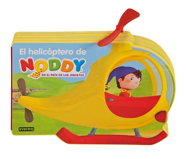 Este libro de cartón de colores brillantes tiene forma de helicóptero e incluso lleva una hélice de plástico encima para que los niños puedan hacer volar a Noddy.