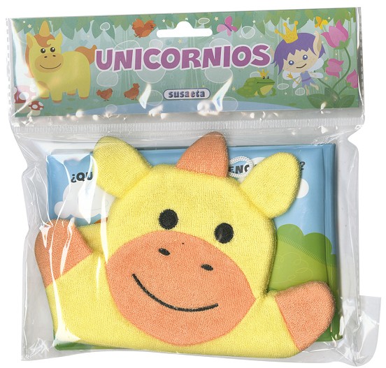 ¡Qué divertida es la hora del baño con este simpático libro de unicornios! Conoce su mundo y pásatelo en grande mientras juegas en el agua. Además, incluye una manopla con la forma del unicornio.