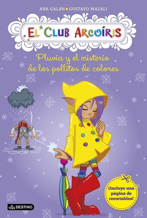 Pluvia, la ninfa de la lluvia, acaba de reunirse con sus amigas y, ahora, felices, pasean por un mercadillo. ¡Oh!, acaban de ver pollitos verdes, azules y rojos. ¡Alguien los ha pintado! ¡Eso está mal, pero que MUY MAL! ¿Podrá El Club Arcoíris rescatar a los pobres pollitos y descubrir al culpable?