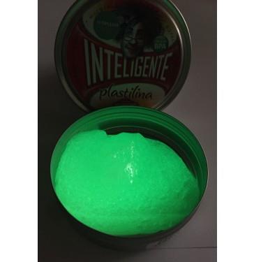 Plastilina de color blanco, pero si la expones a la luz intensa emite luz en la oscuridad de color verde. Prueba de jugar con ella a oscuras, ¡alucinante! Además con la Plastilina Inteligente puedes hacer cosas sorprendentes: - Lánzala y botará como una pelota. - Tira de ella y se estirará como un chicle. - Déjala en reposo y poco a poco fluirá como un líquido pero a cámara lenta. - Rásgala con rapidez y se romperá como un papel. - Golpéala con un martillo sobre una superficie dura y verás como estalla en pedazos (reúne los pedazos y volverás a disfrutar de ella). - Puedes moldear burbujas de aire y "explotarlas". Plastilina con propiedades insólitas respecto de la plastilina convencional: - No mancha, no huele y no se seca. - No-tóxica, apta para celíacos y alérgicos al látex. - Presentada en caja cilíndrica metálica. - Fabricada en EEUU. - Cada unidad contiene 80 gramos de plastilina.
