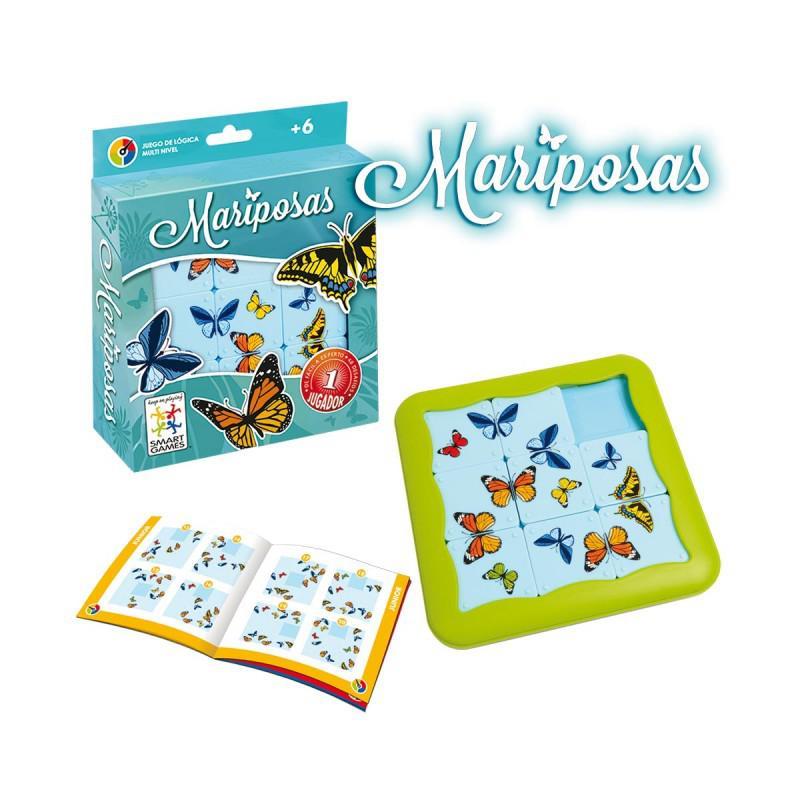 Mariposas es un juego único y divertido, con 48 retos, de fácil a experto, que desarrolla el razonamiento lógico y la percepción visual y espacial.