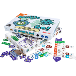 Scottie Go! está formado por una aplicación y un set de fichas de cartón. Las fichas sirven para escribir los programas que más tarde se escanearán mediante un dispositivo móvil o una cámara web. Propone cerca de un centenar de problemas de dificultad progresiva para los que habrá que crear algoritmos simples y complejos y así familiarizarse con los conceptos básicos del mundo de la programación.