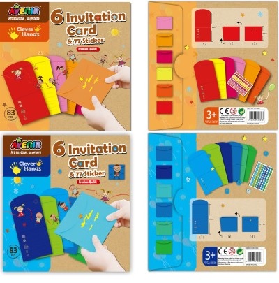 2 modelos surtidos.Presentado en un sobre de carton con 83 elementos (6 invitaciones y 77 pegatinas)