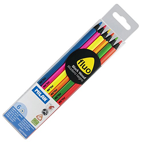 • ESTUCHE 6 LAPICES FLUOR MADERA NEGRA (azul, fucsia, amarillo, naranja, verde, rojo)