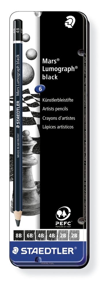 • LAPIZ STAEDTLER LUMOGRAPH BLACK ESTUCHE 6 LAPICES 100B G6 (8B, 6B, 4B, 2B)