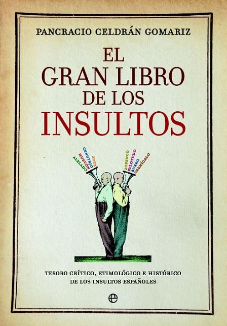 Por eso ha escrito Pancracio Celdrán Gomariz este Gran libro de los insultos, para que todos podamos encontrar el calificativo ajustado a todo tipo de conductas sin necesidad de repetir ningún improperio o agravio. Por sus páginas desfilan, sin faltar una, todas las palabras y palabrotas que se pueden usar como invectivas, ofensas, burlas o denuestos, en un nutrido y abigarrado batallón de las miserias del alma en forma de cantos rodados de la lengua y sus hablantes; una mezcla perfecta de historia de los vocablos y diccionario al uso con más de mil entradas.