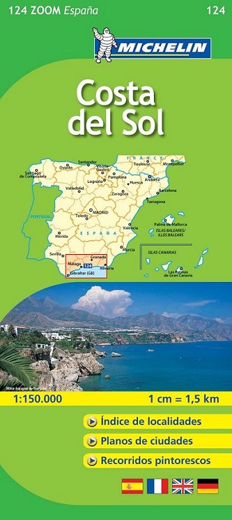El Mapa Zoom Costa del Sol, editado a escala 1/200 000, presenta la leyenda en cuatro idiomas (castellano, alemán, francés e inglés), índice de localidades y contiene los planos de Algeciras, Almería, Granada, Málaga y Marbella.